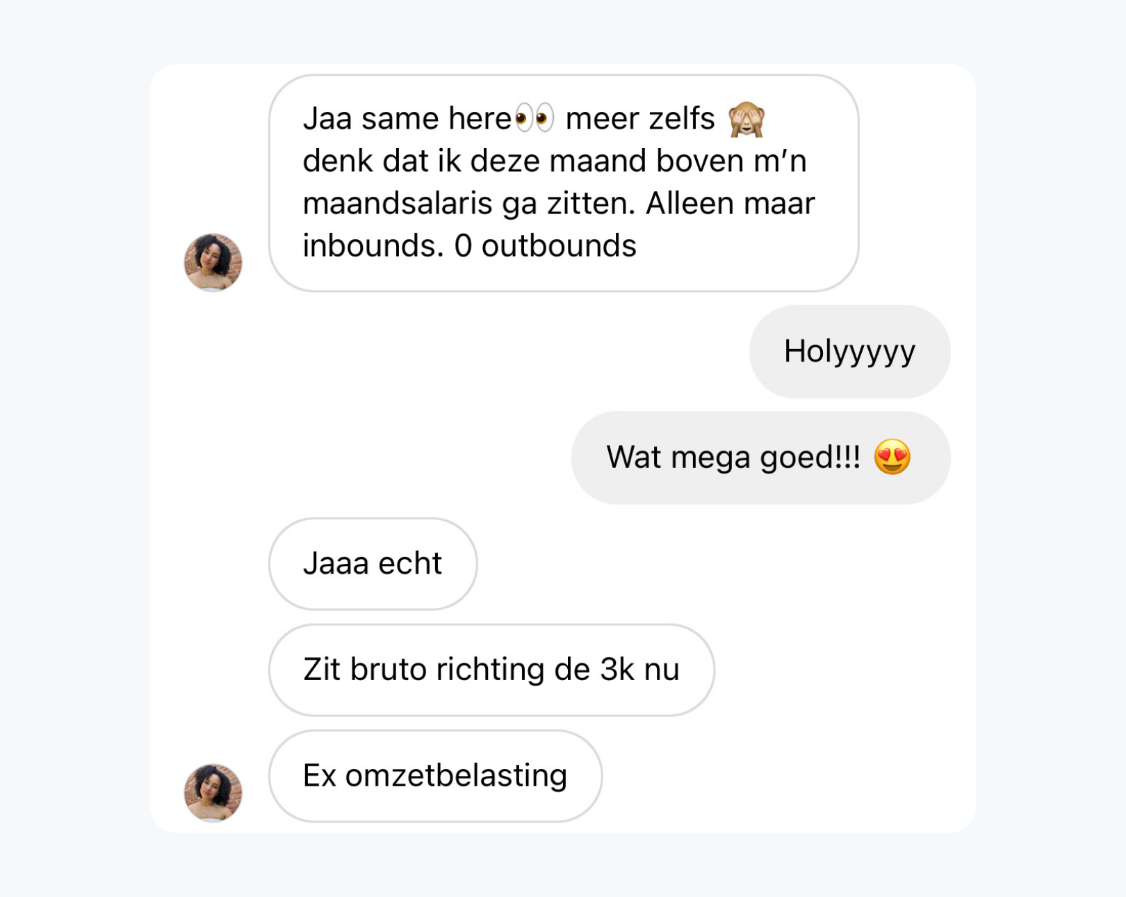 "Momenteel woon en werk ik online vanuit het heerlijke Bonaire waar ik super dankbaar voor ben. Ik heb vorige maand mijn eerste €5K verdiend en deze maand alweer bijna!"