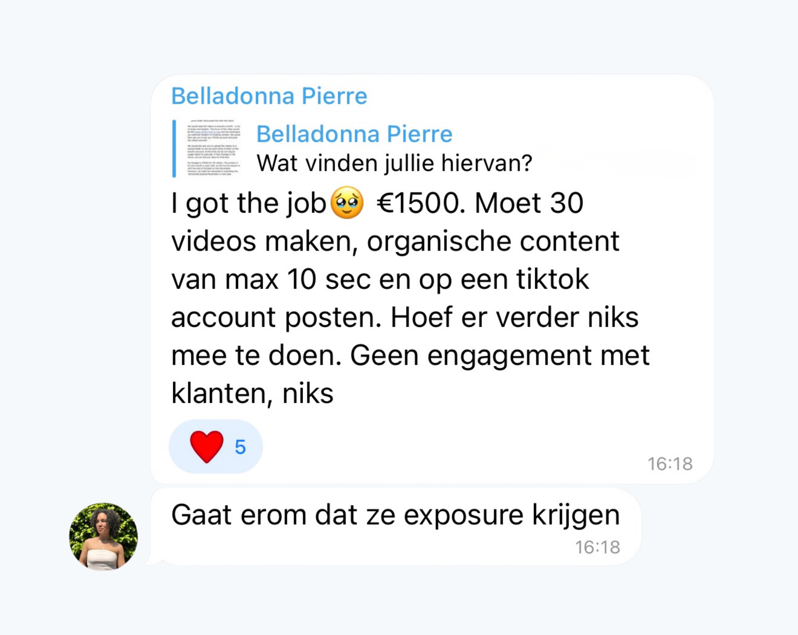 "Zojuist een call gehad en mag met ze samenwerken voor UGC!"