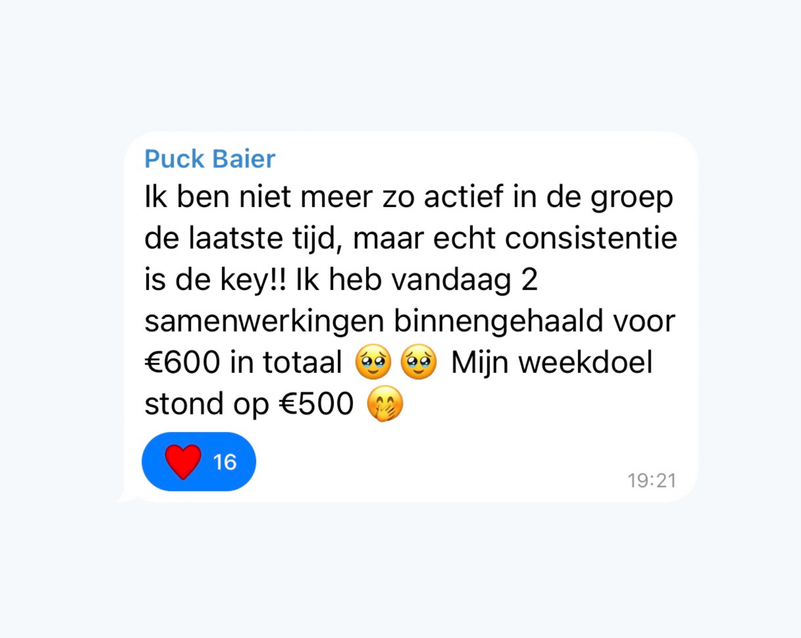 "Zojuist een samenwerking binnengehaald voor €2100!"